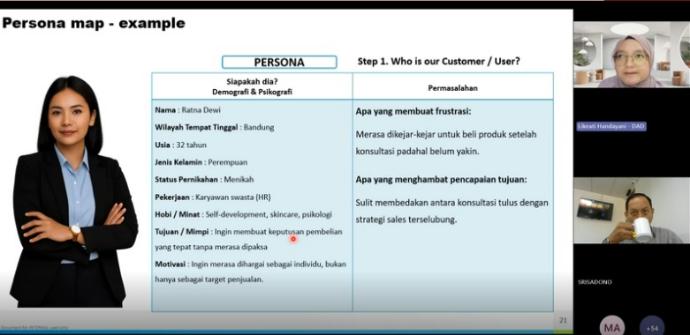 Materi pelatihan yang mendalam dan aplikatif dibawakan oleh narasumber ahli, Ibu Likeati Handayani, yang menjabat sebagai Leader Tim Data Scientist di UT. Ibu Like memandu peserta melalui lima tahapan utama Design Thinking, mulai dari Empathize, Define, Ideate, Prototype, hingga Test, memastikan peserta dapat menerapkan kerangka kerja ini .
